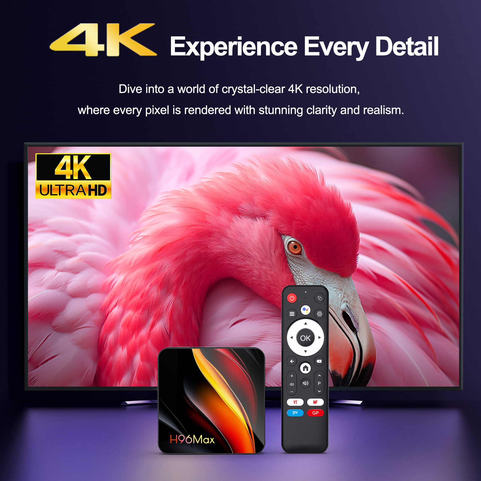 The H96 Max H313 delivers impressive 4K video output, offering clear and vibrant image quality. As a 4K Android TV Box Factory Direct solution, it supports smooth playback of high-definition content, making it ideal for streaming platforms, educational media systems, and digital signage installations.